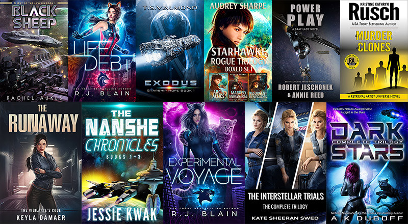 In this set of books—including three StoryBundle exclusives—you will meet heroes and villains, all larger than life, roaming myriad worlds and stations and outposts on quests for survival or freedom or love or redemption. You will find yourself with enough thrilling adventures to banish every doldrum, and every one of them will take you far in every way possible.