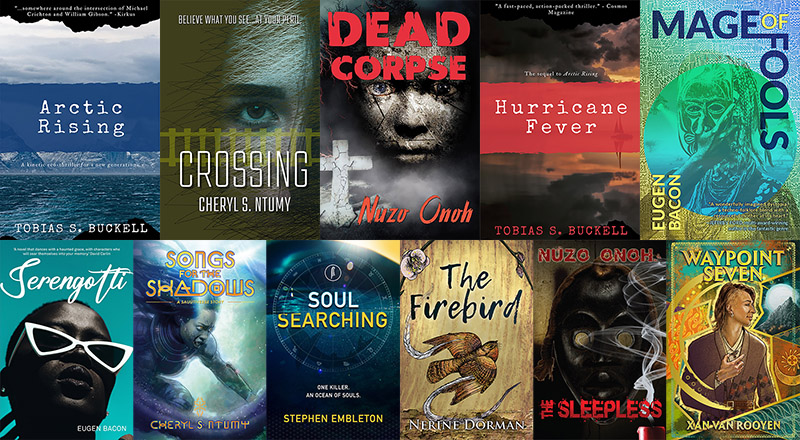 In April, we gave you a titillating ensemble of Afrocentric short story collections and anthologies, and they were quite the hit! Now here's a collectors' trove of thought-provoking speculative novels and novellas by multi-award-winning Afrodescendant peoples, on Blackness, dystopias, positionality and writing the other. Savor near future ecothrillers, climate activism, kindredhood, multiverses, mysticism, unregulated technology and precognitive mutants to blood magic, theocracies, African spirituality and river dances at one with the rhythmic gong of spellbinding drums. Features work by Xan van Rooyen, Stephen Embleton, Nuzo Onoh—the "Queen of African Horror", Tobias Buckell, and more. Curated by Solstice, Locus, British Fantasy Award Winner and Otherwise Fellow Eugen Bacon, who is also a multi-award finalist (Philip K. Dick, Shirley Jackson, World Fantasy, BSFA Awards). – Eugen Bacon