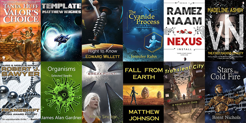 Award winners and nominees abound in this collection. Hugo and Nebula award-winning author Robert J. Sawyer offers up his genetics-based near future novel, Frameshift, while Arthur C Clarke Award finalist, Alison Sinclair, presents the first book of her SF Plague Confederacy series: Breakpoint: Nereis. Aurora Award winning Edward Willett gives us a rousing space opera with Right to Know.