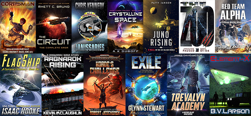 • Element-X by B.V. Larson – An agent with special abilities leads a crack team to claim the secrets of a crashed alien ship, only to end up at war with competing salvagers and the aliens themselves.
