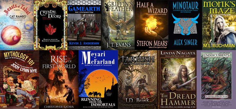 These thirteen books cover a range of classic fantasy types, from epic quests, to modern retellings of classic myths, to humorous encounters with Little Folk, to lit-RPG adventures, to sea monsters, ancient curses, and saving the world. These indie-published authors include Cat Rambo, Kevin J. Anderson, Rebecca Moesta, Jody Lynn Nye, M.L. Buchman, J.T. Evans, Christopher Katava, Stefon Mears, Alex Singer, Meyari McFarland, J.D. Brink, and Linda Nagata, and there's also the Undercurrents anthology edited by Lisa Mangum, stories of "what lies beneath" (proceeds from this anthology benefit the Don Hodge Memorial Scholarship Fund for the Superstars Writing Seminar).