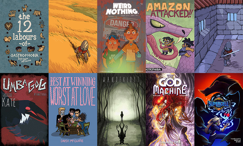 When the time came to curate a bundle of underground comics, the task was daunting. Rare is the medium with greater variety. It was important to select comics that honored the sprawling width and breadth of the comic world. Umbagog is a tale of a version of our own world, besieged by a ravaging plague that in light of recent years feels uncomfortably prescient. Wanderlust tells the story of people simultaneously a part of their world and apart from it, and how relationships can bridge any gap—even the gulf between human and the unknown. The God Machine provides haunting gothic visuals in a tale worthy of its own pantheon. Vattu is a genuine epic, staggering in scope, conjuring a rich world and its history. Super Cell combines adventure and intrigue reminiscent of a superhero comic with a world of vivid anthropomorphic designs. Gastrophobia is equal parts mythology, humor, and off-kilter wholesomeness. And Weird Nothing drops the reader into a quiet mountain town with a sci-fi secret.