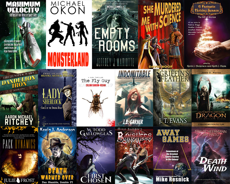 If you want a lot of short stories, we have two anthologies, A FANTASTIC HOLIDAY SEASONS, with everything from zombies for Thanksgiving to aliens at Christmas: perfect reading for this time of year. Award-winning Mike Resnick has AWAY GAMES, a collection of his stories about sports and science fiction. And MAXIMUM VELOCITY, science fiction adventure stories, the Best of Full Throttle Space Tales.