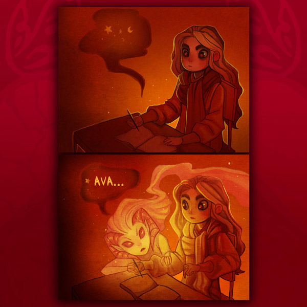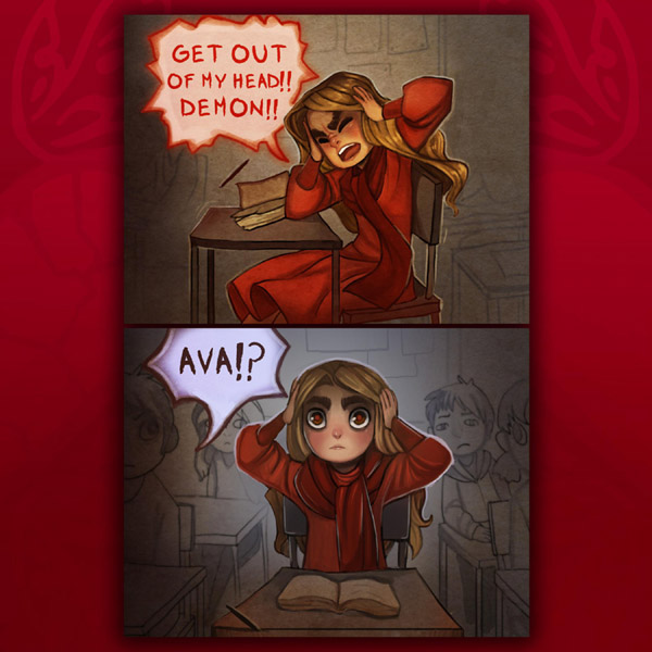 "Ava's Demon" is an ongoing science fiction and fantasy, storyboard-styled webcomic about a girl named Ava and the demon haunting her.