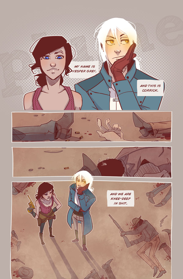 Plume is a western adventure about Vesper Grey and her supernatural (and reluctant) guardian Corrick. On their way to recover some stolen artifacts, they start to learn the gritty truth about the past and how far they're willing to go to amend it.